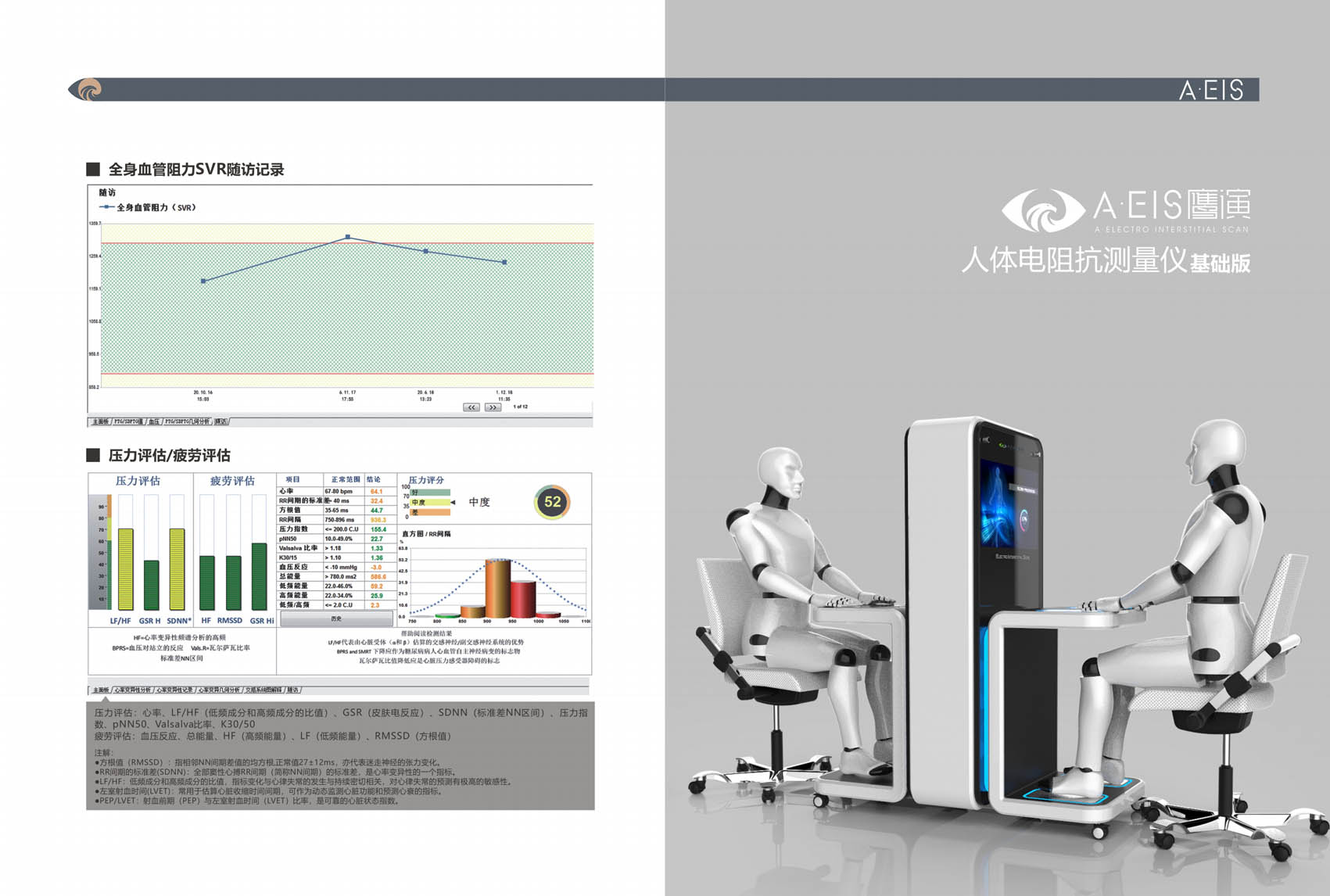 鷹演人體電阻抗測量儀基礎版是一款兼具專業性和大眾性的全自動智能健康管理系統,是由多頻段人體3D分析評估系 統、數字脈波分析、血流動力學評估和自主神經系統評估等組成的強大的智能健康管理集成系統。其中的BC-OXI和 Wellness Pro,是整合現有權威統計篩選評估的最新和最先進的工具。經過科學驗證,人體電阻抗測量儀基礎版提供了 一種智能、便捷、簡單、無創的檢測方法,可以在3分鐘內測試受檢者的多項靜態和動態生理指標。適應于小型的健康 中心、健康會所、社區中心、養老中心、醫學美容中心、健身中心、SPA中心、瑜伽和體育運動中心等,對受檢者進行 有力的健康檢測、健康監測、健康指導,是健康管理的得力工具和助手。